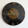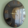 Orologio da Parete realizzato in sughero nero vetrificato e numeri romani in resina oro antico, unisce leggerezza, design moderno ed esclusività artigianale.