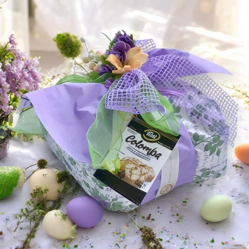 Colomba artigianale classica, gusto cioccolato pera, soffice e fragrante incartata a mano.