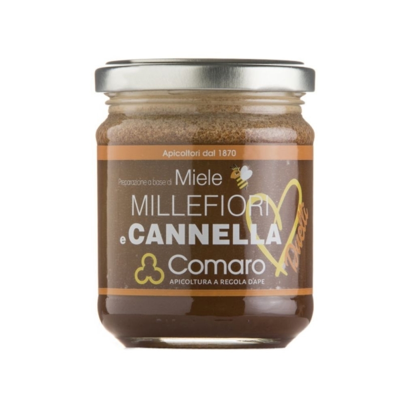 Preparazione alimentare a base di miele millefiori (98%) e cannella in polvere (2%).