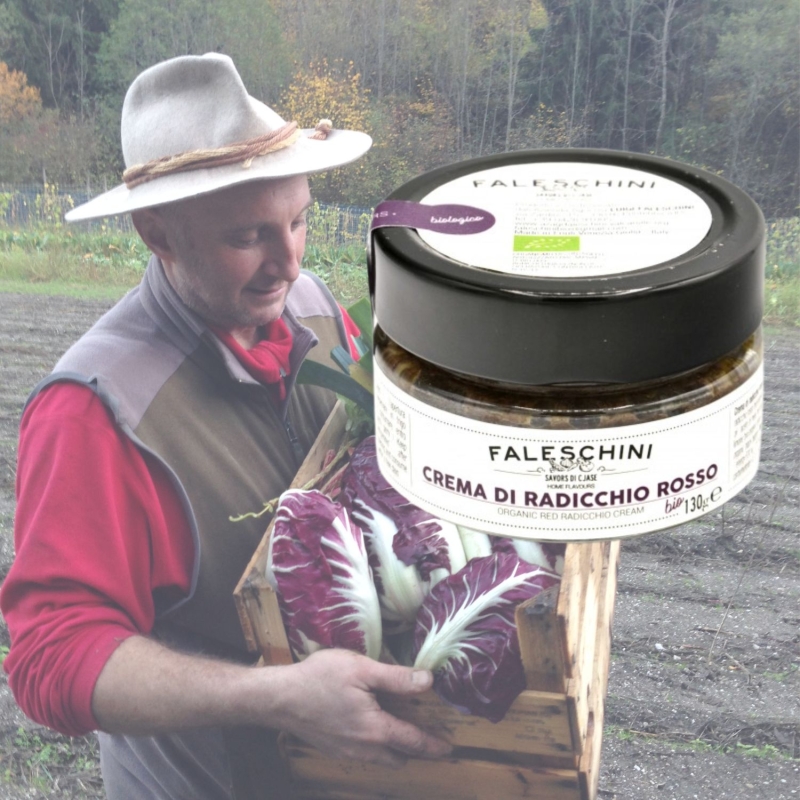 Crema di radicchio rosso, con cipolla e pepe nero prodotta con ortaggi coltivati con metodo biologico in Valcanale (UD), da usare per creare deliziosi antipasti o come condimento per i primi piatti. Il pepe nero macinato dona al prodotto una nota decisa e aromatica, mentre la cipolla arricchisce di una vena dolciastra la crema. Il radicchio rosso viene raccolto a fine estate dai campi dell’azienda agricola di montagna, e le foglie più tenere vengono prelevate per la realizzazione della crema, che mantiene il colore tipico della materia prima. La crema di radicchio ha un retrogusto amarognolo e piacevole, che è una caratteristica tipica del radicchio rosso. La cipolla ne dona una nota dolciastra, che conferisce al prodotto un gusto “dolce-amaro”. La consistenza è cremosa, al palato leggermente piccante, dovuta alla presenza del pepe nero, che viene aggiunto macinato a pestello.